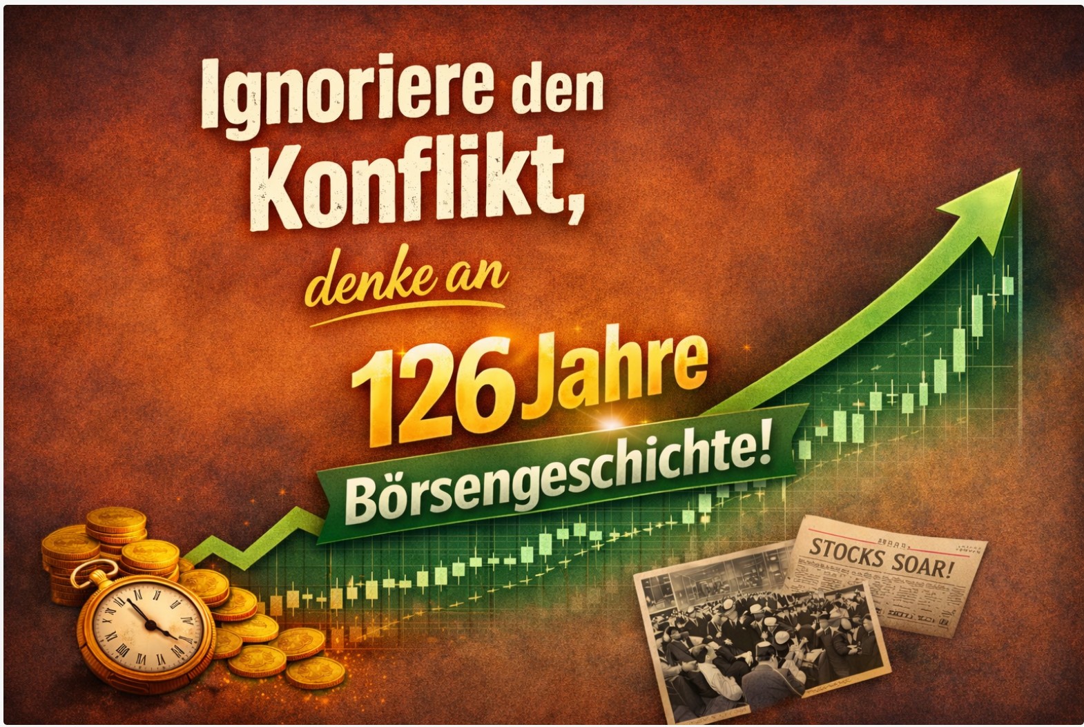Ratschlag für alle, die ihr Vermögen sicher durch die Jahrzehnte bringen wollen: Aktien kaufen. Gold kaufen. Von Krisen nicht verunsichern lassen.