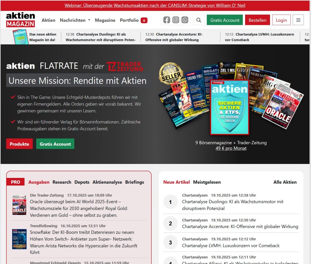 Im Bereich der Börsenpublikationen herrscht ein großer Konkurrenzdruck. Die Neukunden-Aqkuise im Verlagsgeschäft ist kostspielig. Wir schlagen unsere Konkurrenten durch das Netflix-Prinzip. Die aktien Flatrate beinhaltet für nur 49 € mittlerweile 9 Börsenpublikationen sowie die Trader-Zeitung. Weitere Börsendienste werden nach und nach ergänzt. Wer die aktien Flatrate abonniert hat, wird vollumfänglich mit Aktienresearch zu den verschiedensten Themen versorgt. Sehr beliebt bei unseren Lesern sind unsere nachbildbaren Echtgeld-Musterdepots. Wir folgen damit der Philosophie von Nassim Nicholas Taleb, der fordert, dass erfolgreiche Wirtschaftsakteure „Skin in the Game“ zeigen sollten.